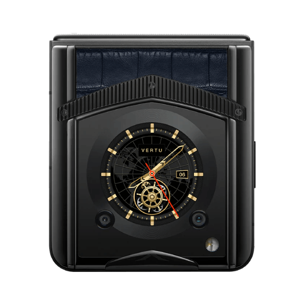 Các điểm nhấn quen thuộc của điện thoại Vertu cũng được lặp lại trên chiếc smartphone gập này, điển hình là chữ V mang tính biểu tượng ở mặt lưng, tựa như huân chương của hiệp sĩ giúp toát lên phong thái hoàng gia mạnh mẽ. Máy cũng được bao bọc bởi chất liệu da quý hiếm, mềm mại lại vững chắc.